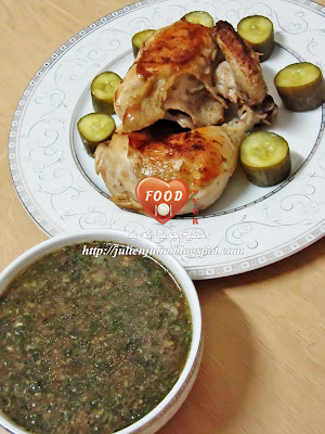 4- Sprinkle salt and pepper on the boiled chicken and broil on medium low for 10 min. or till golden, serve Molokheya with pickles, and steamed rice or Egyptian bread as you desire... Bon Appétit :)